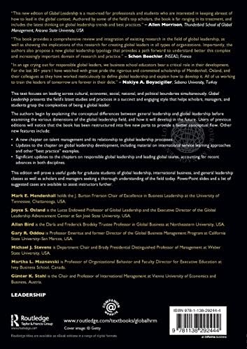 Global Leadership Research Practice And Development Global Hrm Mendenhall Mark E Bird Allan Oddou Gary R Stevens Michael J Stahl Gunter K Osland Joyce Maznevski Martha 9781138292444 Amazon Com Books